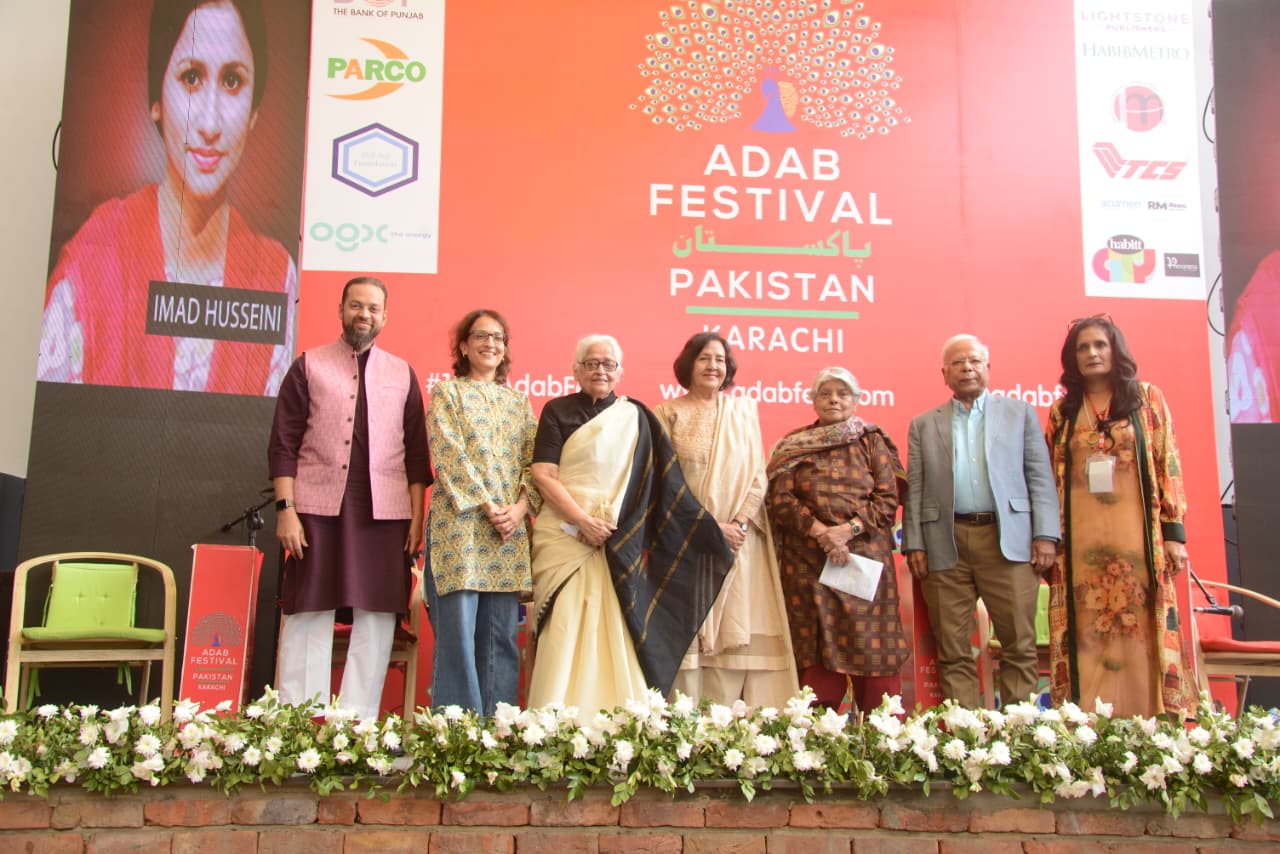 The Festival commenced with an official inauguration ceremony presided over by Zehra Nigah, with Pomme Amina Gohar as MC. Guests were welcomed with the National Anthem performed by students of Roots Millennium School, followed by opening remarks from Adab Fest Founder and Director Ameena Saiyid OBE, Sitara e Imtiaz, Chevalier de l’Ordre des Arts et des Lettres, and Munis Abdullah, CEO of IBL Group and venue partner.