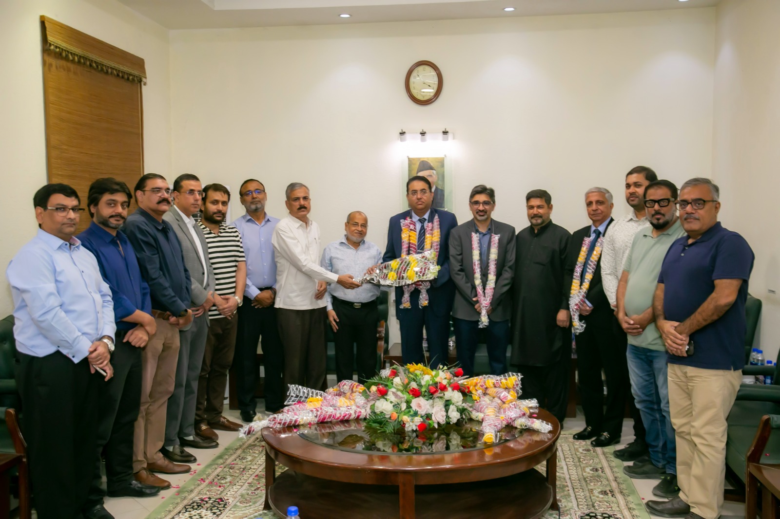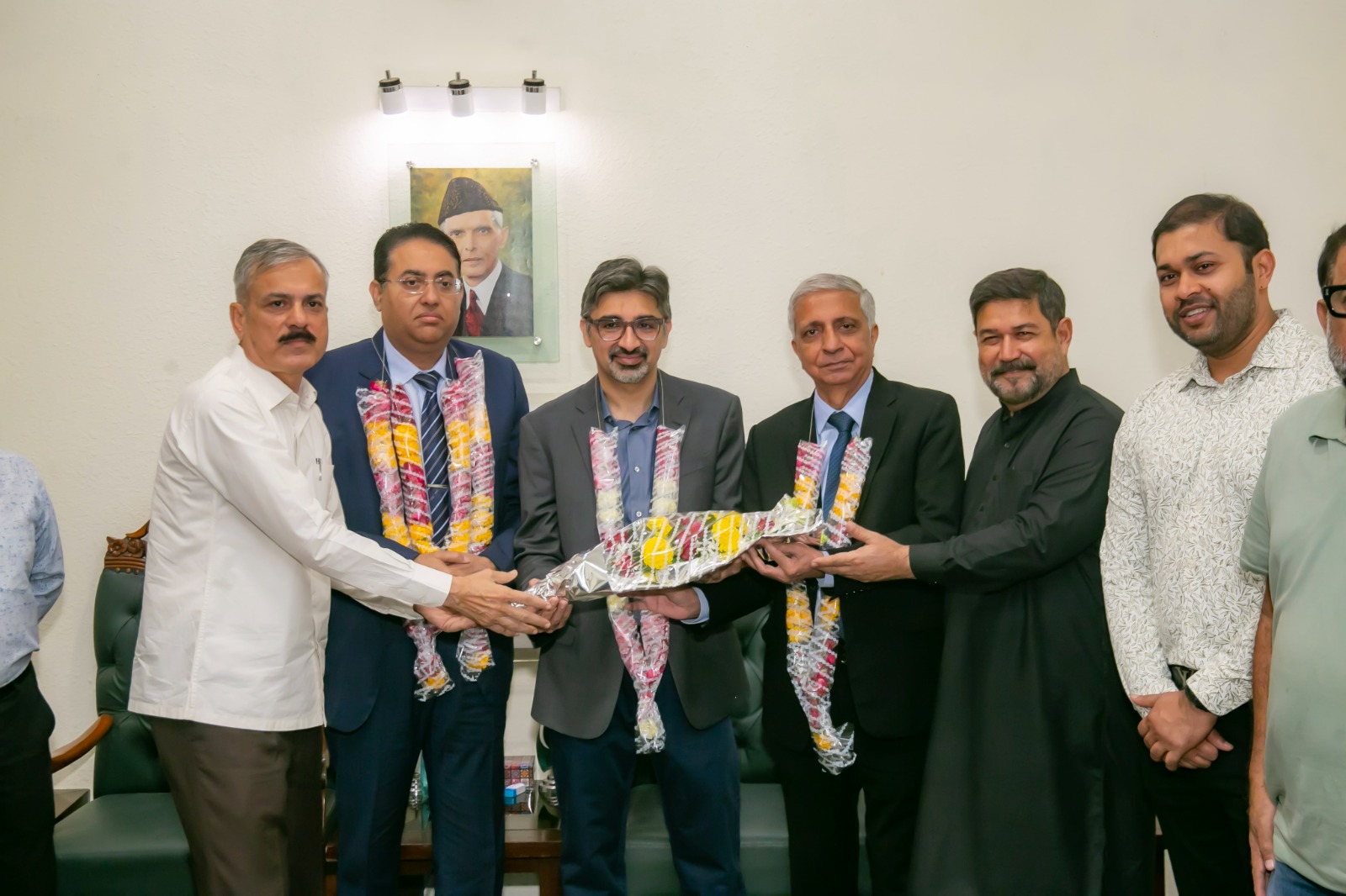 Karachi : A delegation from the Karachi Tyre Dealers Association, led by Aslam Pervaiz, visited the Karachi Chamber of Commerce & Industry (KCCI) to felicitate the newly elected President KCCI Rehan Hanif, Senior Vice President Muhammad Raza, and Vice President Arif Lakhany, where as Former Vice Presidents KCCI Nasir Mehmood & Muhammad Faisal Khalil were present this occasion.