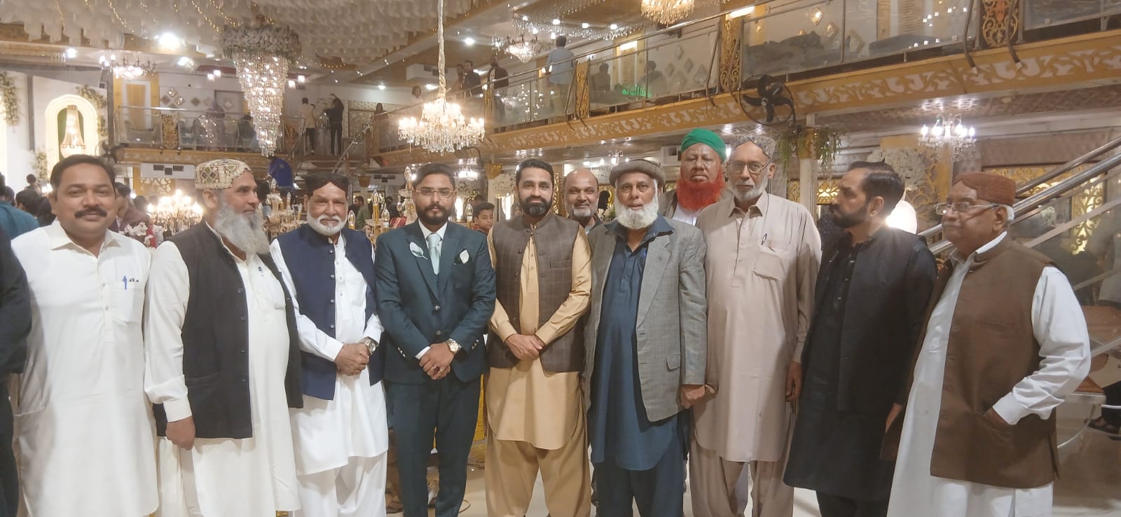 A group photo featuring distinguished personalities from the community alongside senior journalist Sirajuddin Amjadi at the wedding reception (Walima)