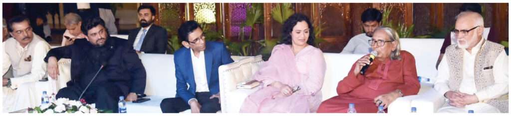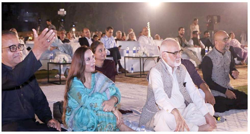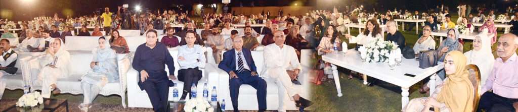 The Governor’s House, adorned with vibrant greenery and sparkling lights, provided a picturesque setting for the event. The chilly winds added a refreshing touch to the atmosphere, enhancing the overall ambiance. Attendees enjoyed the Mushaira from a mix of elegant sofas, comfortable chairs, and traditional floor seating, all contributing to a memorable and dignified event.