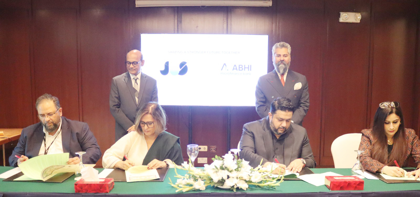 The agreement was formally executed by Muhammad Farooq Kamran, Chief Financial Officer, and Mariam Pervaiz, Chief Commercial Officer, on behalf of ABHI Microfinance Bank, and by Sara Hasan, Head of JBS Consulting, and Adil Wadood, General Manager, representing Jaffer Business Systems. The signing ceremony was also attended by Kabeer Naqvi, Entrepreneur in Residence at ABHI, and Veqar Islam, Chief Executive Officer of Jaffer Business Systems, along with senior members of both leadership teams.