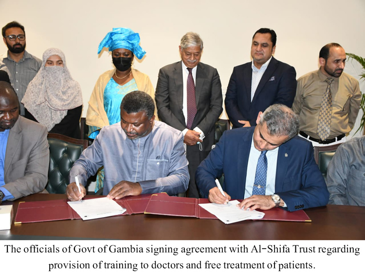 Al-Shifa Trust has signed an agreement with the Government of Gambia to provide short-term specialised professional training to their doctors and deserving patients from the West African nation will be offered free treatment.