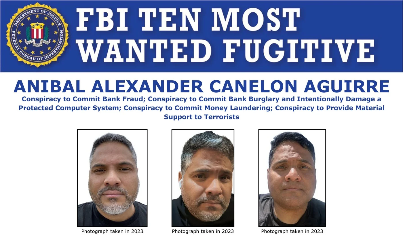 Anibal Alexander Canelon Aguirre has been added to the FBI’s Ten Most Wanted Fugitives list. Canelon Aguirre is wanted for allegedly leading a large international conspiracy that deploys numerous crews to the U.S. to steal millions of dollars from financial institutions in support of the Tren de Aragua (TdA) transnational gang. TdA is a designated foreign terrorist organization that originated in Venezuela and now operates throughout Latin America and the U.S.