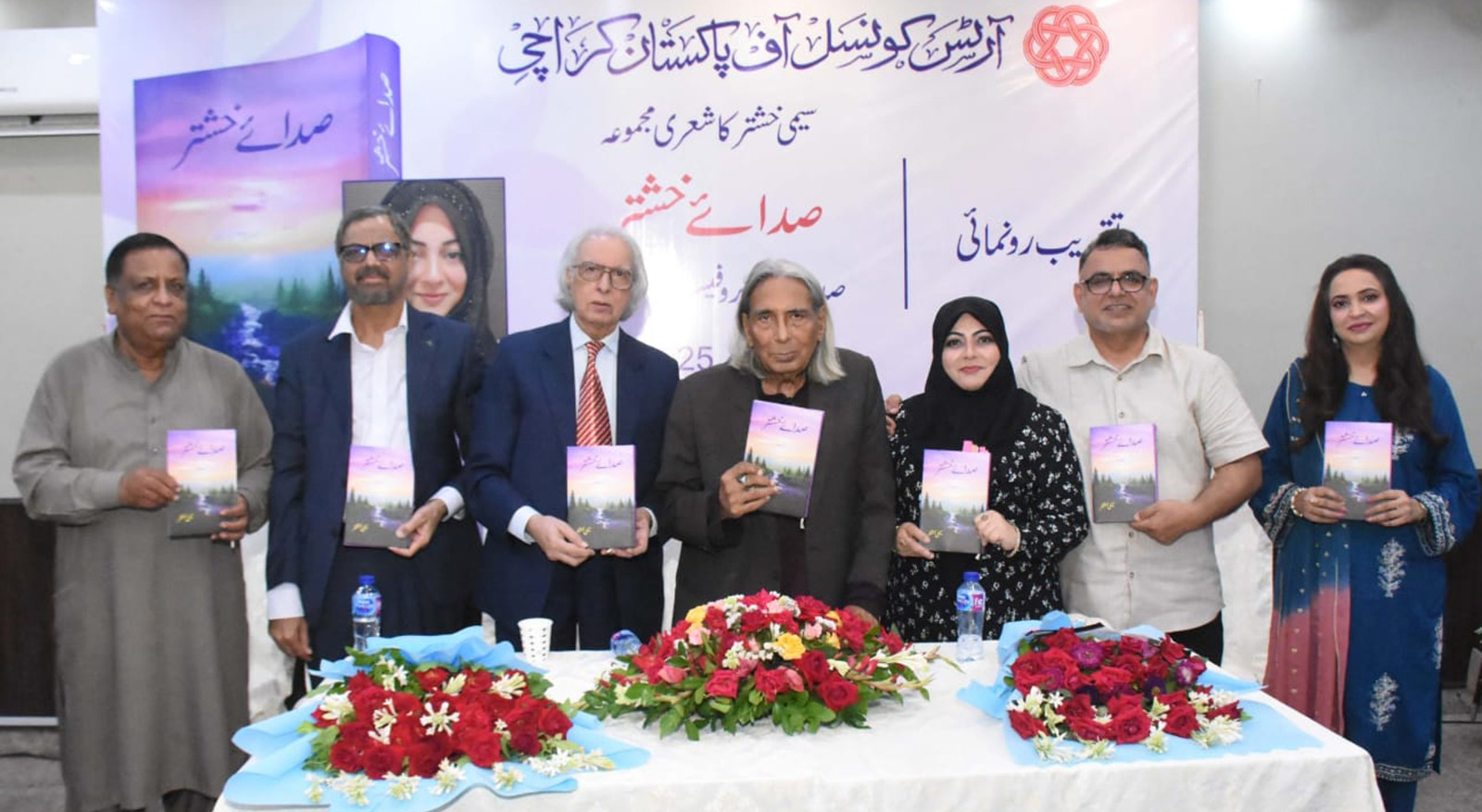 In his presidential address, Professor Sahar Ansari expressed his delight at the launch, saying, “Today is indeed a joyous occasion. The fact that this event is being held at the Arts Council is commendable. Simi Khushtar’s poetry reflects her personal experiences and consciousness. Her collection stands out for its individuality, embodying self-respect and courage. I also congratulate Ambreen Haseeb Ambar for thoroughly studying and understanding this work, which reflects the book’s maturity.”