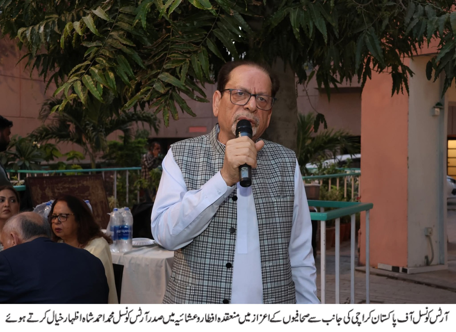 Karachi: Arts Council of Pakistan Karachi hosted a grand Iftar and dinner at Jaun Elia Lawn in honor of journalists, which was attended by a large number of media professionals from electronic, print, and digital platforms.On the occasion, President Arts Council Muhammad Ahmed Shah, along with members of the governing body, warmly welcomed the journalists and thanked them for attending the Iftar dinner. In his address, he said that it has always been a tradition of the Arts Council to maintain close and cordial relations with the journalist community.