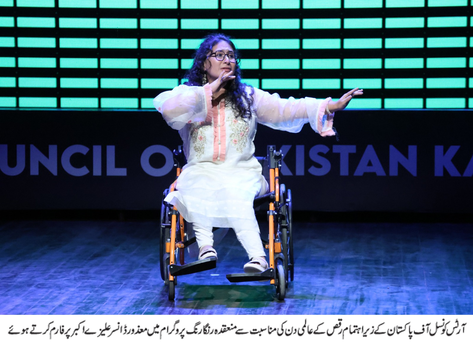 She added that dance is a discipline one must adopt. Classical dancer Sheema Kermani stated that Dance Day was first introduced in Pakistan in 1983 and has been celebrated every year since. She emphasized that it is essential to preserve cultural heritage from Mohenjo-daro to the present day. She further said that dance is not something bad or sinful; rather, it is a beautiful art that exists within human beings. She especially encouraged young women to learn dance, noting that it is a long and demanding process that requires years of dedication to master. During the celebration, differently-abled dancer Alizeh Akbar performed brilliantly on the famous song “Afreen Afreen,” receiving great appreciation from the audience.