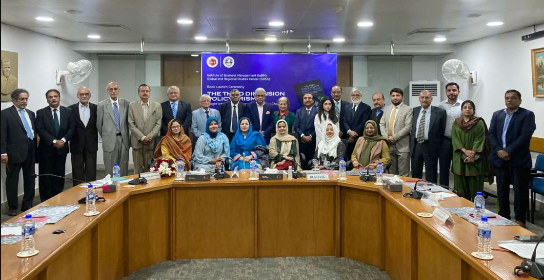 The Institute of Business Management (IoBM) hosted the launch of “The Third Dimension: Policy Prism – Insights into Global, Regional and National Challenges” by Ambassador Ghulam Rasool Baluch. The launch was held on January 21, 2026. Addressing the audience, Ambassador Baluch reflected on the intellectual journey behind the book, describing it as emerging from “the romance with writing and the agony of awareness.” He explained that while writing may begin with curiosity, sustained engagement with global conflicts and structural injustices leads to moral reckoning. “Awareness has a cost,” he noted, adding that deeper understanding makes silence increasingly difficult. The book, he emphasized, invites readers to challenge dominant narratives and resist intellectual complacency.