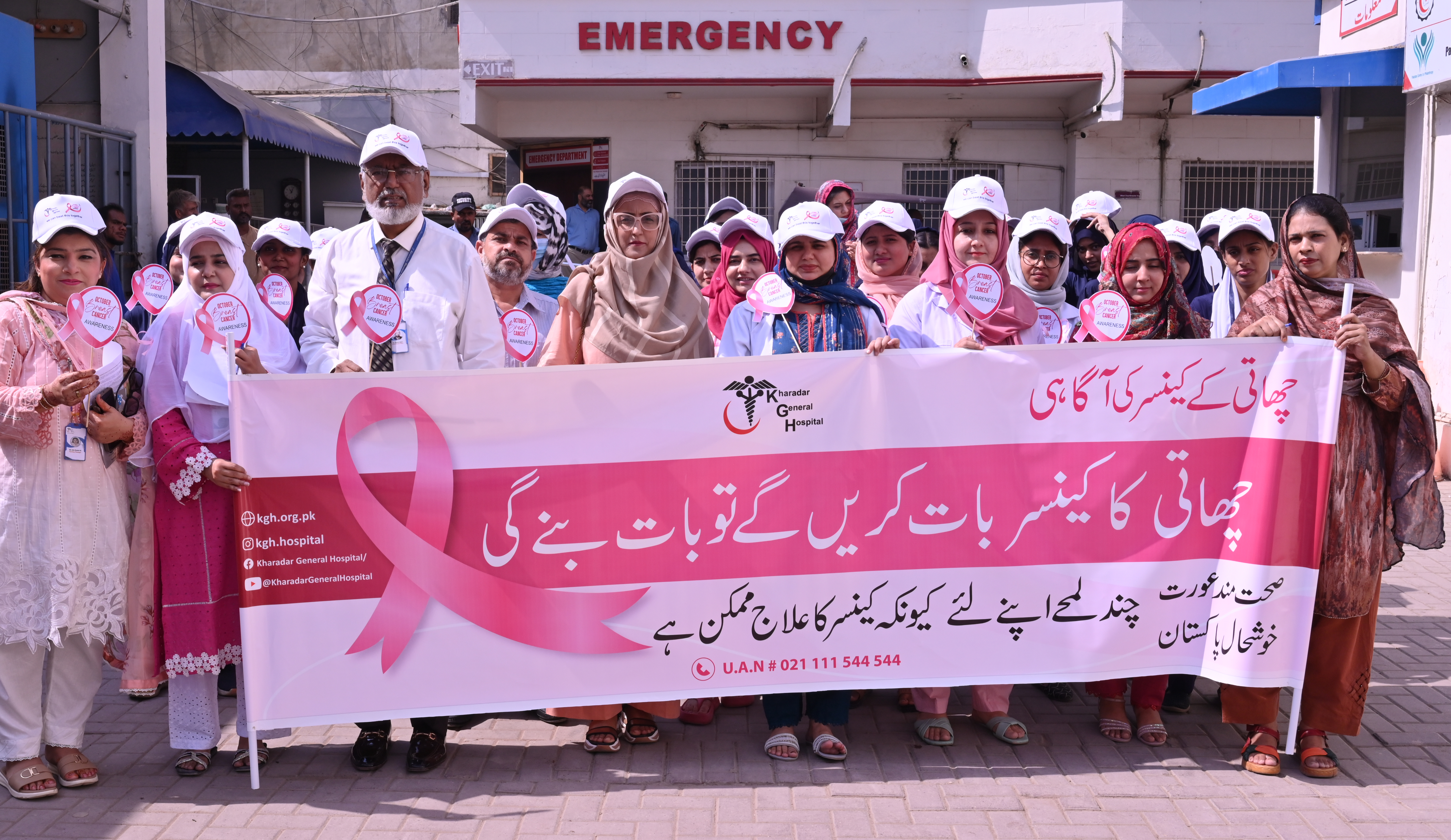 Karachi : A walk and seminar were organized at Kharadar General Hospital to create awareness and prevent breast cancer among women. On this occasion, the hospital’s Chief Executive Officer Dr. Khalid Iqbal said that developing countries can control breast cancer through preventive measures and health awareness. He said that 40,000 women die every year due to this disease. While 90,000 new cases are registered every year. A large number of surgeons, gynecologists, doctors, and nurses participated in the awareness walk. Addressing the seminar, surgeon and breast specialist Dr. Farhana Memon said that keeping an eye on your physical changes for your health, consulting a doctor early, regularly examining other women in the family affected by breast cancer, and early diagnosis through early diagnostic facilities can save human lives. And breast cancer can be controlled. On this occasion, Surgeon Ashfaq Ahmed said that Kharadar General Hospital is playing an important role in health awareness and ensuring the provision of information to the general public. He said that health is a great blessing of Allah and its protection is our first responsibility. It is necessary to implement preventive measures to save from the complications of breast cancer and a painful life. He said that it is the responsibility of every person associated with the health sector to play their role in raising awareness about breast cancer. Dr. Musarat Agha, Department of Gynecology and Obstetrics, said that breastfeeding by mothers is a natural and natural way to prevent breast cancer and it also improves the lives of children.