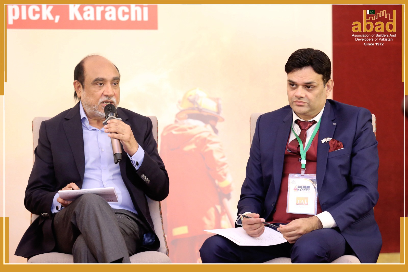 Senior Vice Chairman ABAD Syed Afzal Hameed participates the 15th Annual Fire Safety & Security Convention by NFEH, He emphasizes strong fire safety standards in Pakistan’s construction industry.