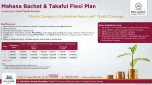 Mahana Bachat & Takaful Flexi Plan – An innovative Shariah-compliant investment-linked Takaful plan by Pak-Qatar Family Takaful. July 19, 2024