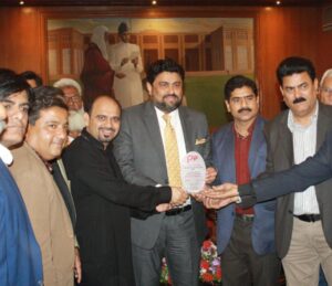 PAPP President Syed Abbas Mehdi, Presents shield to Governor Sindh Kamran Khan Tesori. February 18, 2023
