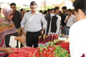 President at UN Global Compact Network Pakistan & Farhan Lakhani and others at the stall of Lakhani Silk Mills. March 30, 2023