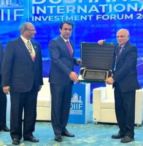 President of Republic of Tajikistan,Chairman of National Assembly & Supreme Assembly of Tajikistan & Chairman City of Dushanbe, receiving crest from Majyd Aziz. October 2, 2023
