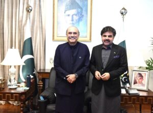 Provincial Minister for Energy, Planning, and Development Nasir Hussain Shah called on President Asif Ali Zardari at Aiwan-e-Sadr, Islamabad. July 12, 2025
