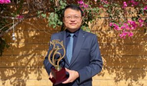 Meng Donghai, Chairman of TCB-1 and SSRL, poses with the NFEH Annual Environment Excellence Award. August 9, 2023