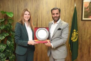 Syed Mustafa Kamal the Federal Minister for Health Services in Pakistan with British High Commissioner Jane Marriott. March 28, 2025