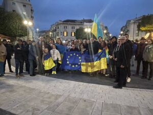 At the People’s Square the demonstration in support of Ukraine and in favor of the United States of Europe. March 3, 2025