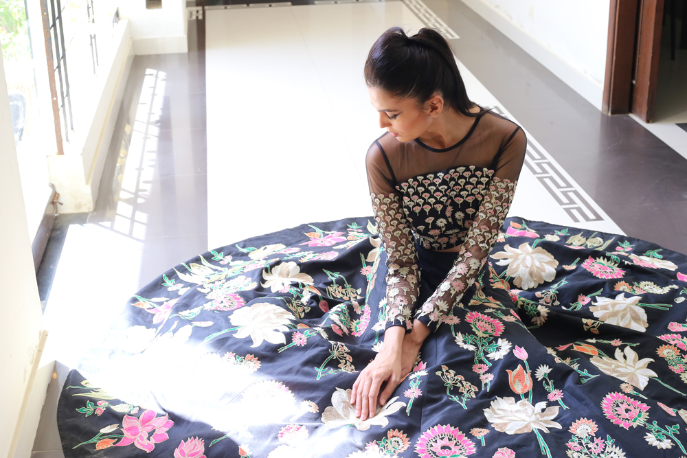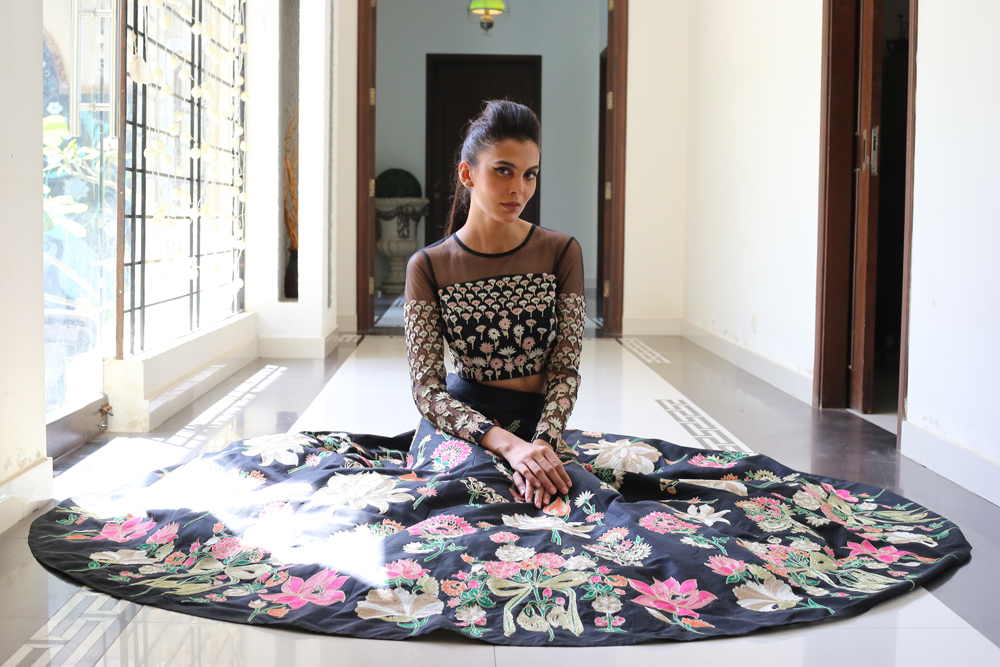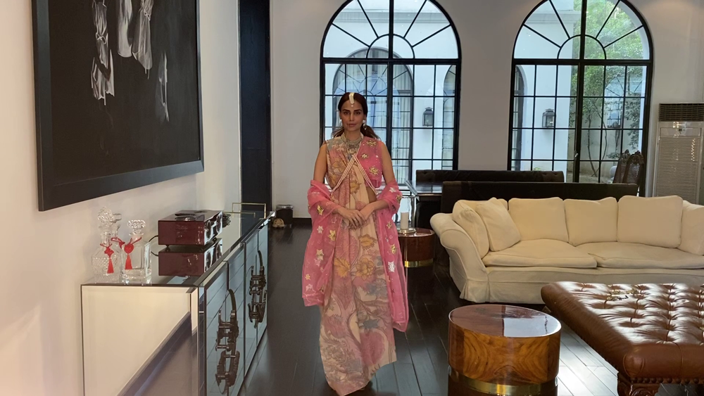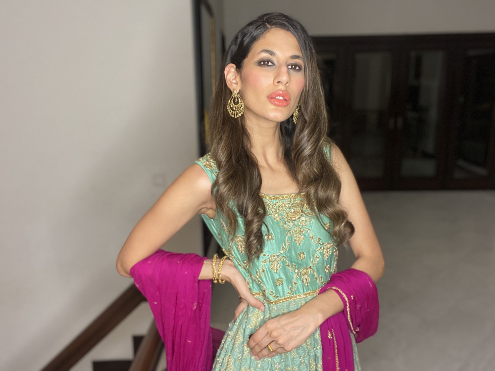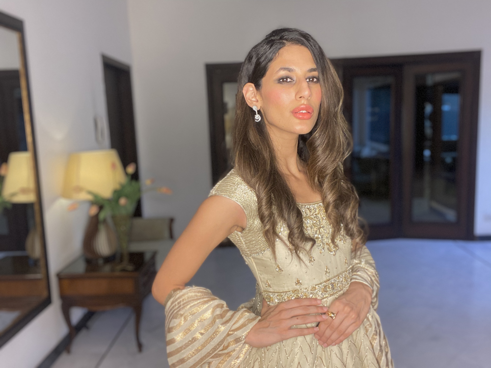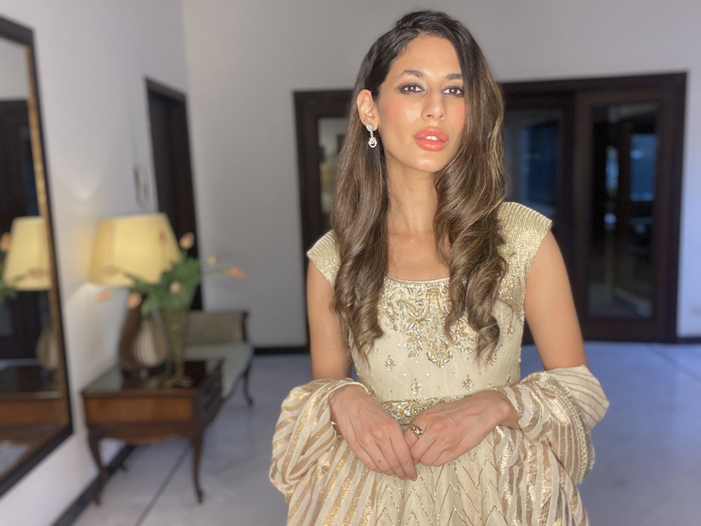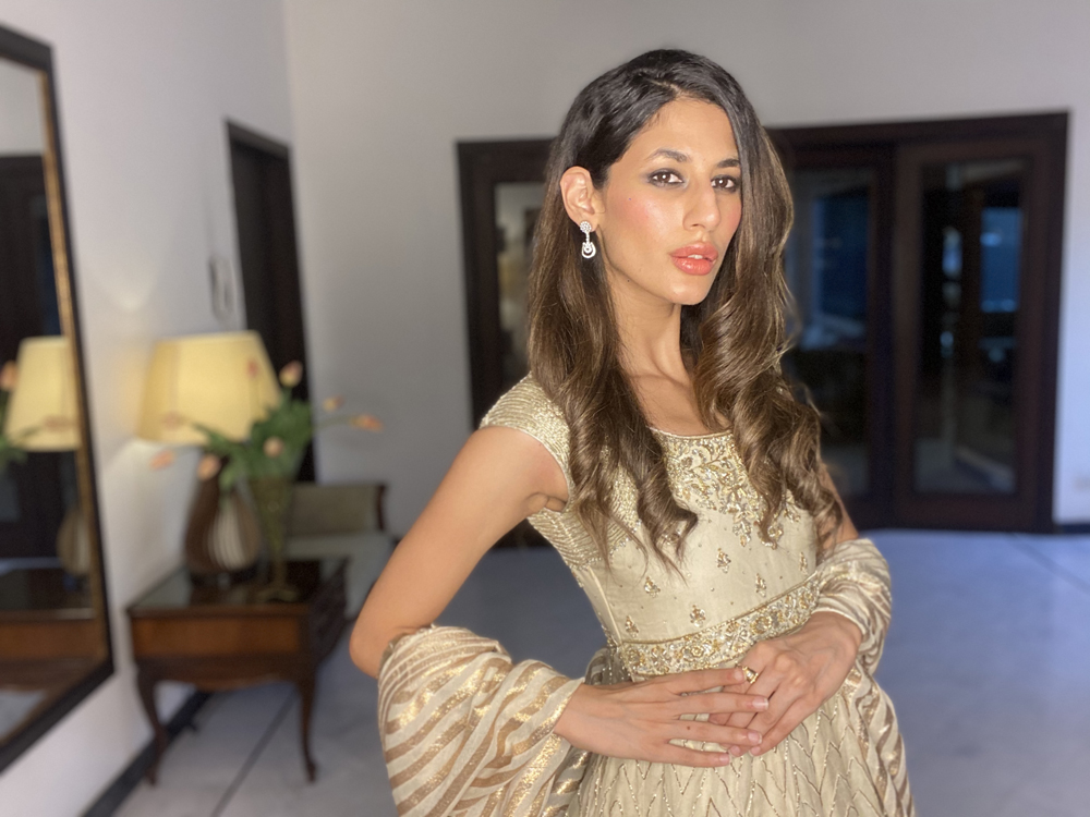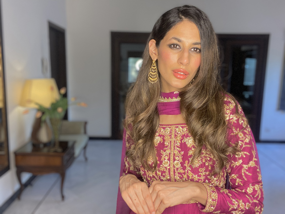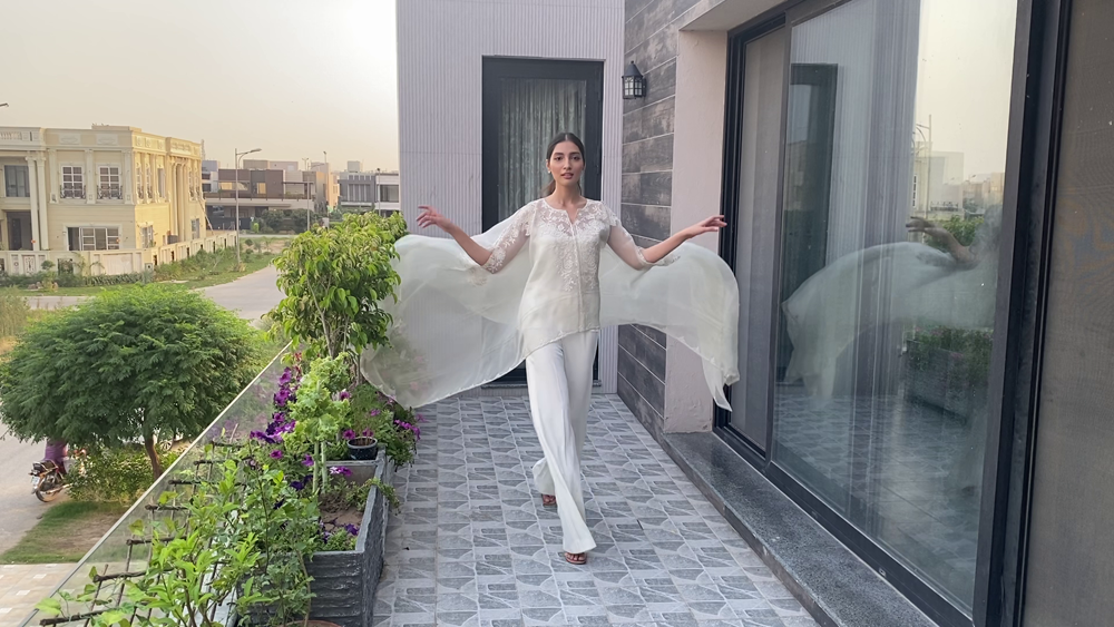 Pakistani Fashion industry maverick designer Ali Xeeshan’ posits virtual fashion and virtual life as “a temporary new reality that we must all adapt to and make peace with and become the flowers that come out of the cracks”.His three looks ‘ Kaafla Zuri and Fame’ capsule collection modelled by statuesque supernova model Mushk Kaleem was inspired by Nature, the Subcontinent’s heritage and inner peace.Using solid colours including neutral black and white and bright festive and summery easy breezy fabrics, cool festive silhouettes “for everyone and anyone to flaunt” included a flowy black and white striped kafran; slim pants paired with a motiffed white shirt and a floral embroidered lehnhga and sheer embroidered and embellished top. Mushk was also seen to be using and prepping with TREsemme products the Hair partner for Catwalk Cares. Says Ali Xeeshan of the collaboration “Great hair produced by using TREsemme products is like getting a great outfit from Ali Xeeshan!”