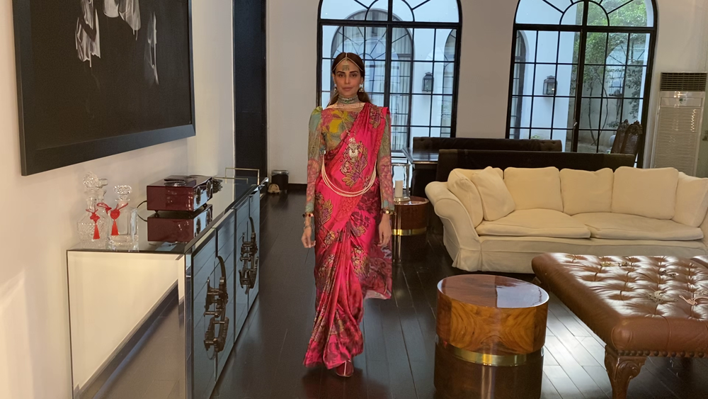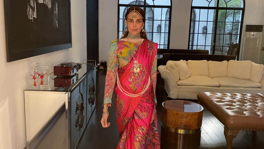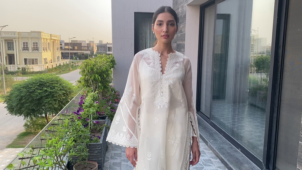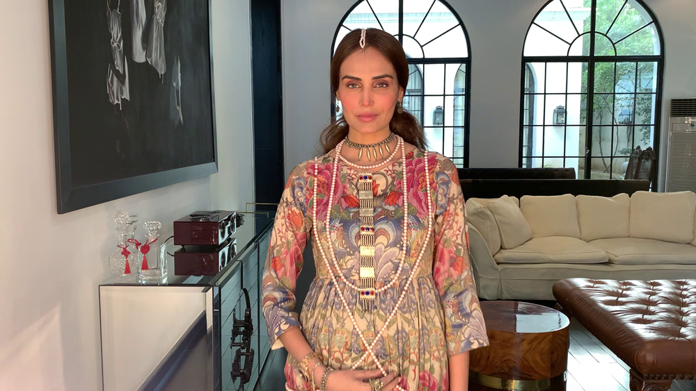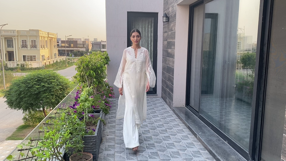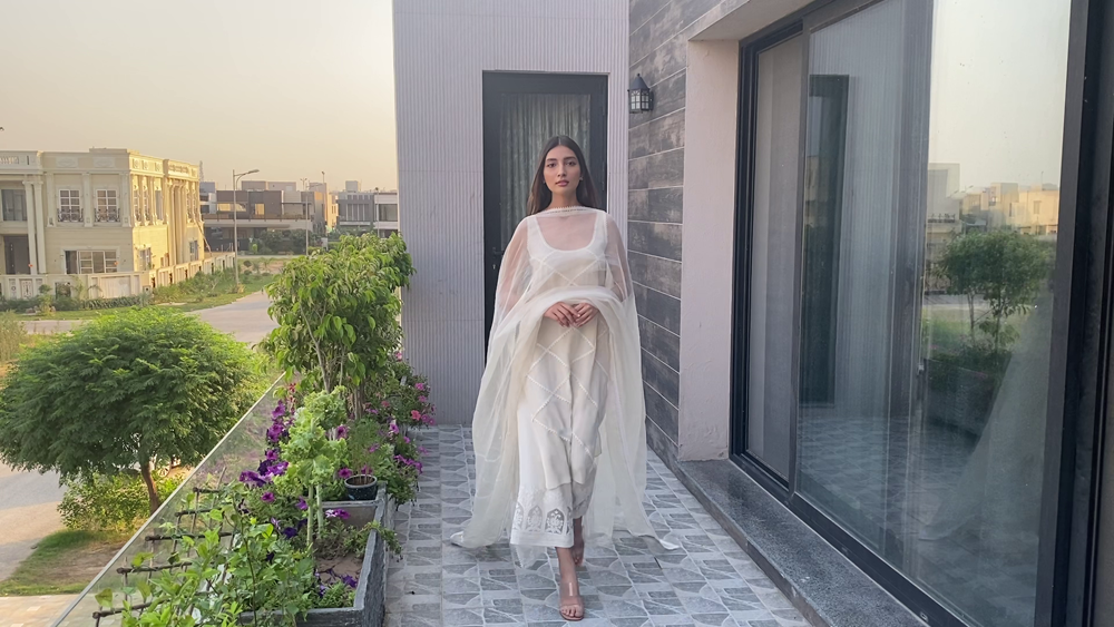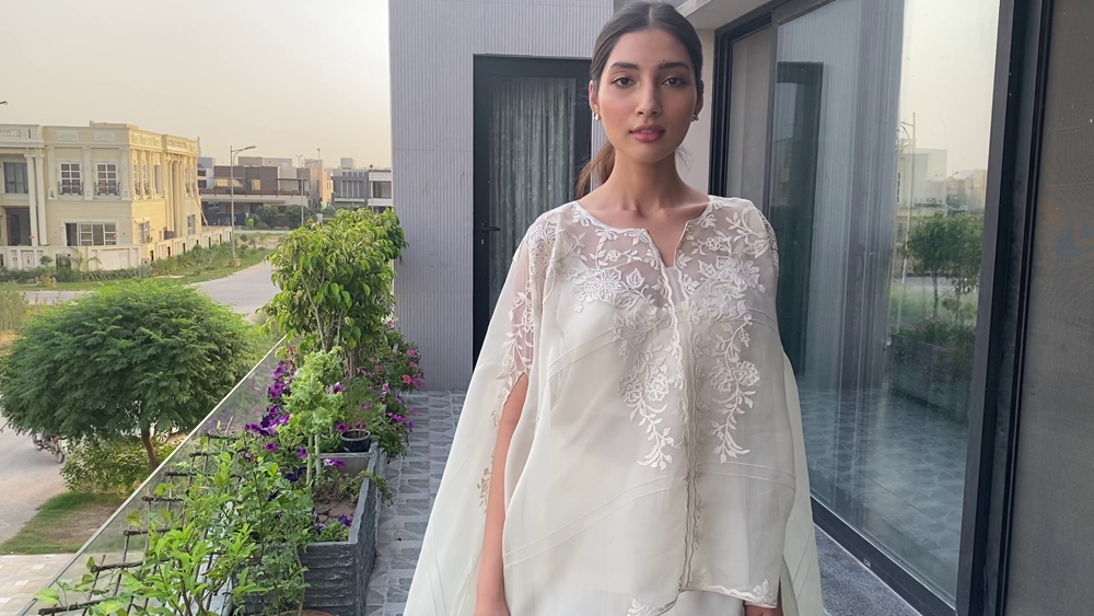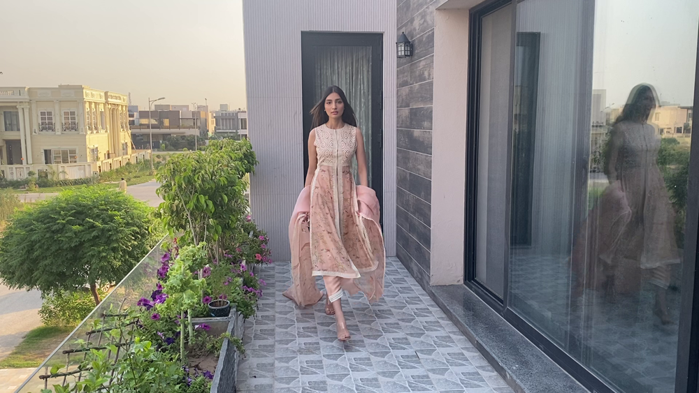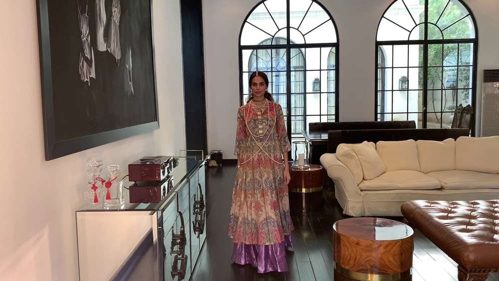 Saniya Maskatiya‘s versatile three looks capsule collection ‘Yara’ modelled by Alicia Khan “and dedicated to all the frontliners” comprised of soft pastel ensembles rendered with intricate machine and hand embroideries further embellished with lace details and elevating fresh floral prints to uplift the summer spirits. Using khaddi silk and organza. ‘Yara’ included an eclectic range of interesting and innovative silhouettes including a classic kurta ; a corner-dropping poncho, and a front-open shirt paired with a shalwar, “a truly versatile collection that has been carefully put together with a little something for everyone to play dress up at home and make the quarantine special for everybody.”