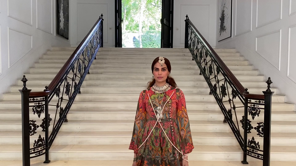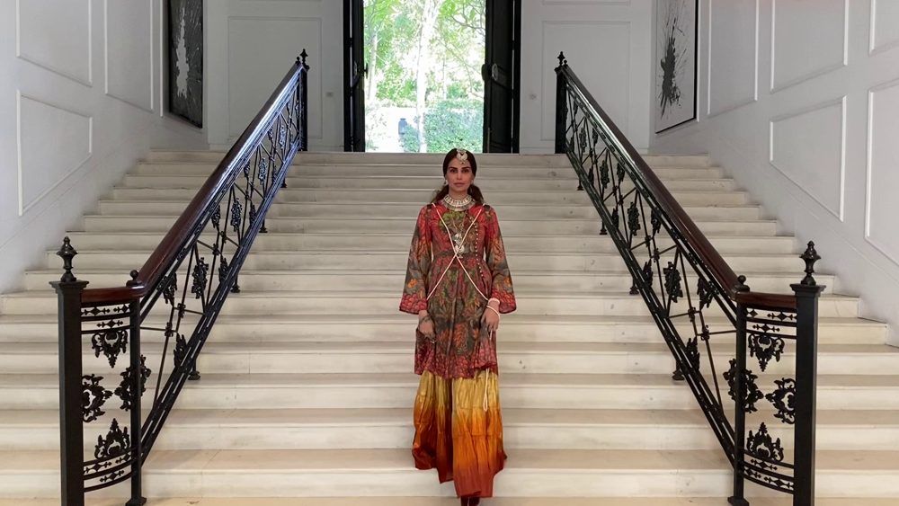 Elan’s Creative Director Khadijah Shah: “Catwalk Cares’ is a great initiative that I am happy to be part of in my small way; paying tribute to the brilliant health workers who we owe so much with their keeping us safe and well and making our loved ones better . There is so little we can really do for the gratitude that we owe them.” Avant garde createur Hussain Rehar’s four looks contemporary eastern fusion capsule collection ‘ The Daughter of the Moon’ modelled by “perfect fit” Neha Rajput in a bucolic outdoor garden-scape takes a departure from Rehar’’s usual outré aesthetic especially in the use of the loose and flowy silhouettes ideal for the upcoming summer heat-wave.