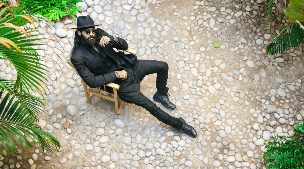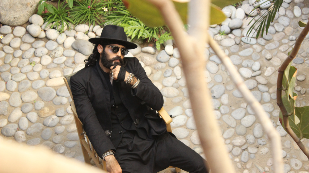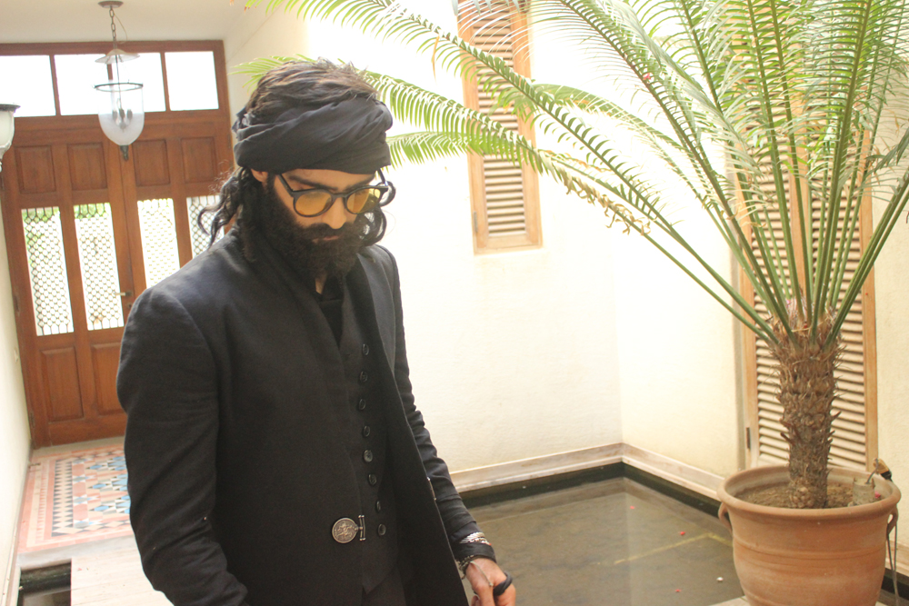 Participating in a fashion show after a gap of almost 12 years menswear connoisseur Ismail Farid reprises his favourite signature theme of monochromes in the three looks all black ‘Monochrome Memoir’ capsule inspired by Sufism and Bohemia and modelled by edgily bearded and artistic supermodel Hasnain Lehri Using cotton and linen in noir ,the western capsule included menswear staples including a waistcoat a suit and a ong short sleeved coat endnote with Fedora hats urban caps and stylish shades.The collection artfully mixed high fashion classic pieces with an edgy Boho -chic twist.