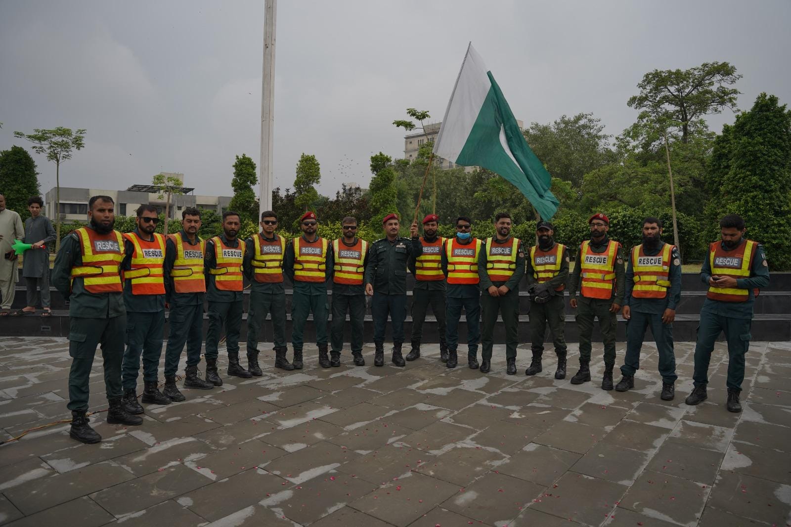 Prior to the march, Assistant Commissioner Model Town Abdul Basit Siddiqui, Deputy Director Marketing CBD Punjab Usman Nadeem, and SP Model Town Ikhlaq Ahmed conducted a ceremonial flag hoisting.