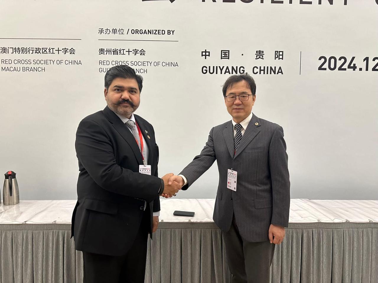 Guiyang, China, December 14, 2024 – Chairman Sardar Shahid Ahmed Laghari of the Pakistan Red Crescent Society (PRCS) held a landmark meeting with His Excellency Mr. He Wei, President of the Red Cross Society of China (RCSC) and Vice President, Mr. Sun Shuopeng, on the sidelines of the International Seminar on Red Cross Resilient Communities in Guiyang, Guizhou Province. The meeting marked a significant milestone in the growing partnership between the two humanitarian organizations.