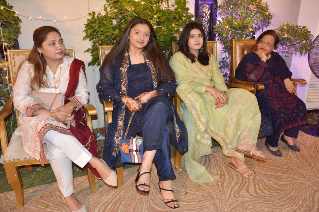 Attended by his wife Chairperson Farzana Wasiq, Daughter Nabiha Khan, Brother Taharat Ali Khan & Mrs. Samina Taharat, Film star Saud Qasmi & Mrs. Javeria Saud, Film star Adnan Shah Tipu & Mrs. Jira Alif Khan, TV star Adnan Jilani & Mrs Neha Jilani, TV star Zeba Shahnaz, Singer Tehseen Javed, Singer Hassan Jahangir, Muhammad Saleem Javed, Shazia Kauser, Shabana Kauser, Senator Nehal Hashmi, Ahmed Shah President Arts Council of Pakistan Karachi, Syed Sarmad Ali MD Jang Group, Babar Abbasi CEO Hussain Marketing Network (HMN), Suffian Adhia CEO Country Builders, Senior Police Officer Altaf Hussain & Mrs Abida Altaf, Zeeshan M. Khan Owner & CEO TNI Communication, Khurram Adeel Director TNI Communication, Former Senior Government Officers Syed Saadat Ali Jafri, Muhammad Hussain Syed, Senior Journalist Syed Sabir Ali, Ather Jawed Sufi, Muhammad Hassan Bakshi Former Chairman ABAD, Rizwan Siddiqui Chief PR Star Marketing, Ghias Anwer Sr. Regional Director Sindh & Balochistan Star Marketing, Anchor & Host Sabi Arsh, Faysal Nadeem, Poet Uzma Ali Khan, Abdul Hameed Aslam Team Leader & Director Portfolio Ghani Osman Securities Pvt. Ltd., Aqeel Abbas Jafri and Syed Turab Shah Chairman AZB Global Trade & Exhibitions.