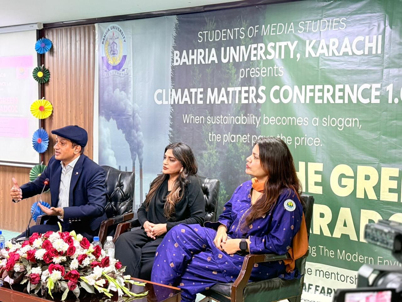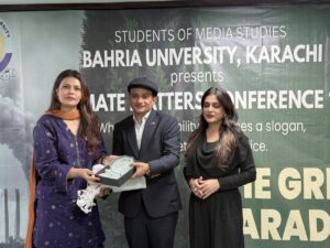 Karachi Pakistan : Climate Matters Conference 1.0 was held at Bahria University Karachi on December 18th, organized by the Media Studies students under Dr. Sadaf Faryal Shah, an environmental expert. The conference, themed “The Green Paradox: Unveiling Harmful Environmental Practices in Modern Times,” took place at Fatima Jinnah Auditorium from 9:30 AM to 12:30 PM.