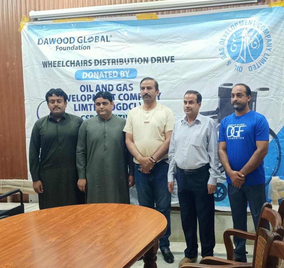 Sukkur, May , 2025 — In a significant move to improve healthcare access in Sindh, Dawood Global Foundation (DGF), in collaboration with Oil and Gas Development Company Limited (OGDCL), distributed a total of 140 wheelchairs to government hospitals in the districts of Ghotki, Sukkur, and Khairpur.