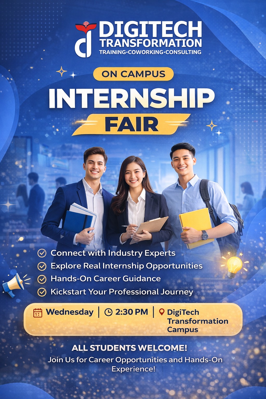 KARACHI — DigiTech Transformation is set to host an Internship Fair on its campus this Wednesday at 2:30 PM, providing students with a platform to explore career pathways and gain practical experience.