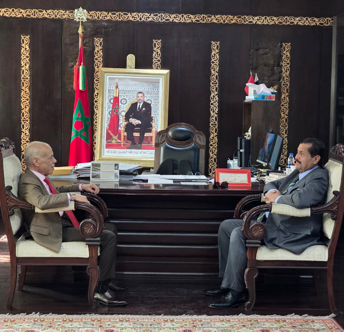 Islamabad : Dr. Mirza Ikhtiar Baig Convener Pak Morocco Parliamentary Friendship Group called on Mohamed Karmoune Ambassador of Kingdom of Morocco, to brief on recent visit of the parliamentary delegation to Morocco led by Sardar Ayaz Sadiq Speaker National Assembly of Pakistan.