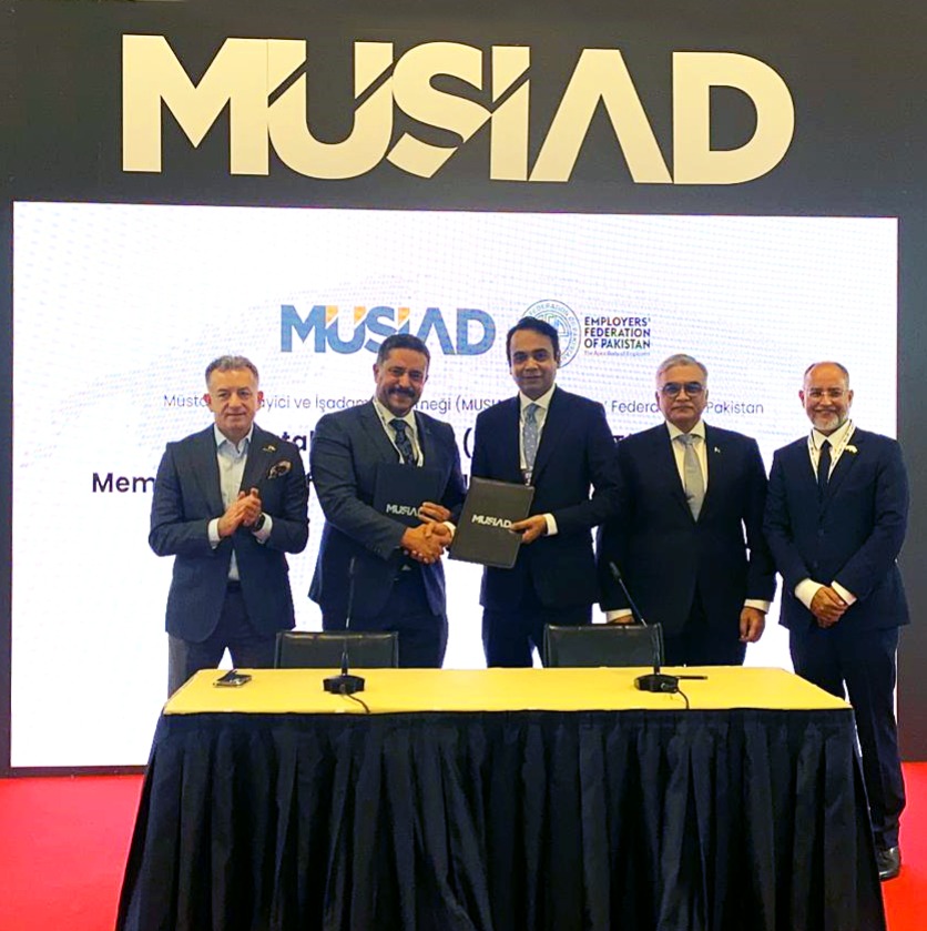 KARACHI, Dec 30, 2024 – In a significant step toward enhancing bilateral trade and investment, the Employers’ Federation of Pakistan (EFP) and MUSIAD (Independent Industrialists and Businessmen’s Association of Türkiye) signed a noteworthy Memorandum of Understanding (MoU) in Istanbul. The MoU marks a new chapter in Pakistan-Türkiye bilateral relations and sets the stage for promoting and strengthening trade ties between the two nations, with a special focus on fostering economic collaboration and advancing mutual trade. Both EFP and MUSIAD are committed to advancing this partnership and ensuring the successful implementation of the EFP Strategic Roadmap to achieve the target of $5 billion in bilateral trade.