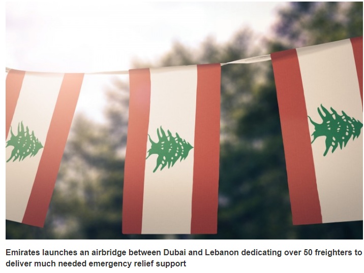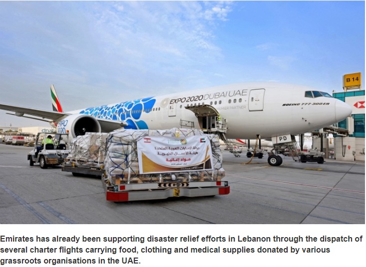 Emirates has already been supporting disaster relief efforts in Lebanon through the dispatch of several charter flights carrying food, clothing and medical supplies donated by various grassroots organisations in the UAE.