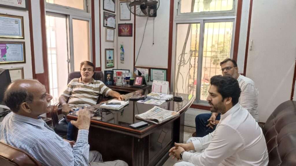 Karachi Pakistan : Famous businessman Faizan Munawar Seharawardi, son of Shaheed Munwar Hasan Seharwardi, Special Secretary of former Prime Minister Shaheed Benazir Bhutto, leader of PPP, Faizan Munawar Seharwardi visited Daily Ausaf and ABN News Karachi office and met Director Sales and Marketing Syed Tarab Shah on this occasion. Mudassar Alam Director Sales and Marketing Pakistan Today and Javed Qureshi were also present.