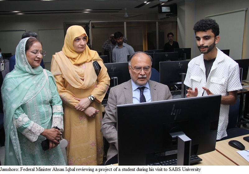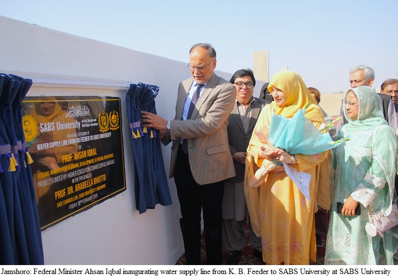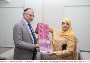 Jamshoro (February 13, 2026): The Federal Minister for Planning, Development and Special Initiatives, Prof. Ahsan Iqbal, paid a visit to Shaheed Allah Buksh Soomro (SABS) University of Art, Design and Heritages, Jamshoro, where he was warmly received by the Vice-Chancellor, Prof.