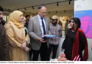 Prof. Ahsan Iqbal also interacted with students and appreciated their enthusiasm and creativity, and art skills. The students expressed their gratitude for the Minister’s visit and shared their academic and creative initiatives with him.