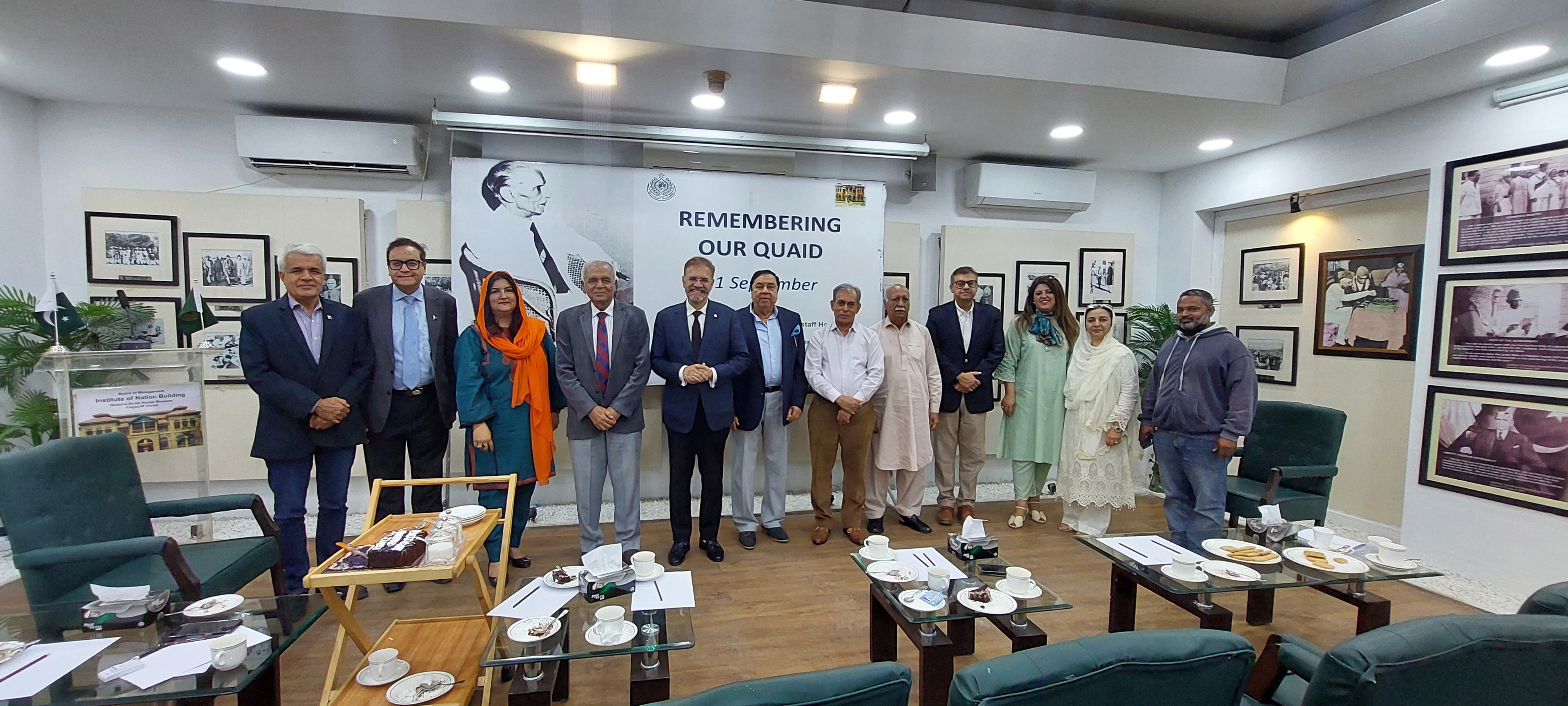 Syed Kashif Rafi. The ceremony was attended by Executive Secretary Quaid-e-Azam House Iram Fawad, Secretary Farhan Ahmed, Members Farzana Khan, Sohail Ahmed Siddiqui, Zahid Iqbal, Waheed Jamalam, Mudassar Alam, Member and Senior Area Manager of Al-Falah Investment Syed Bilal Sabzwari and others, while a cake cutting ceremony was held at the end of the ceremony.