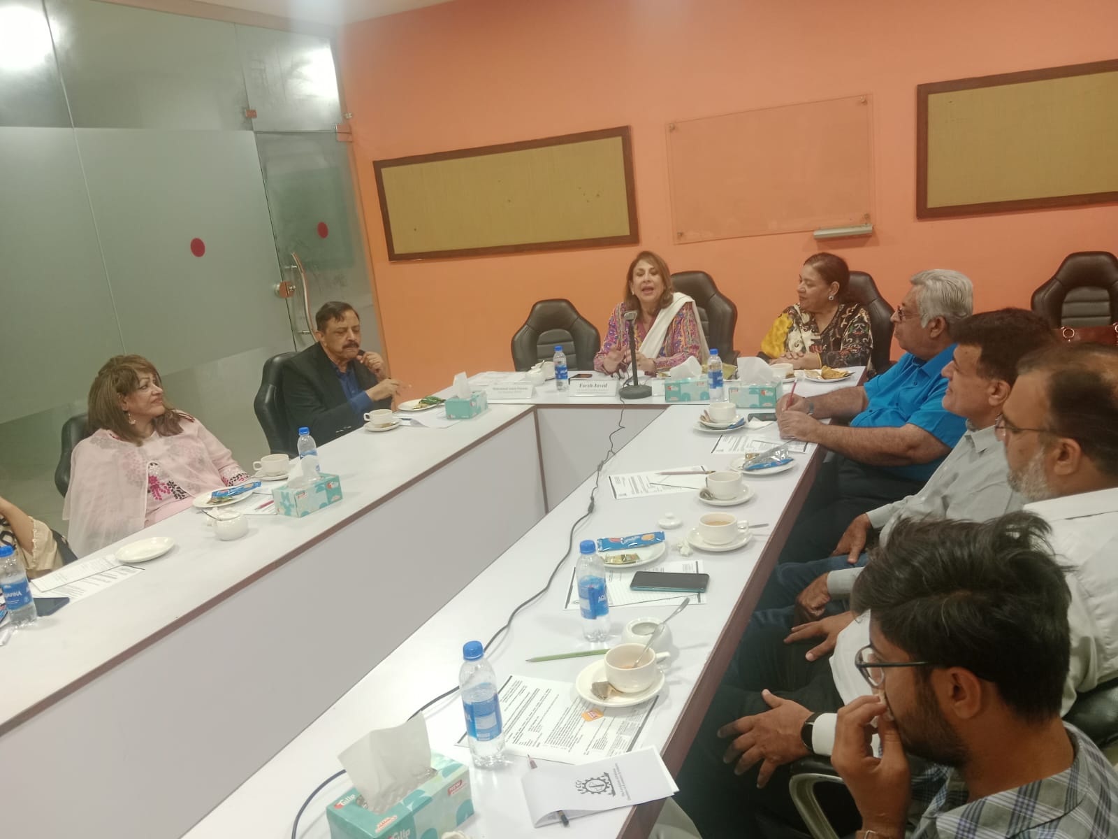 Deputy Convener Shazia Mateen, along with members including Javed Iqbal Mirza, Kausar Aslam, Aslam Khaliq, Dr. Razi Younus, Saima Naqi, Fatima Paracha, Syed Turab Shah, Muddasir Alam, Bilal Ali, Salman, and others attended the session.