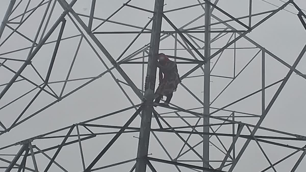INDIA: A memorable scene from the Indian film Sholay was revived in real life half a century later, when a girl in Meerut surprised everyone by climbing a high-voltage electricity tower to demand her lover’s hand in marriage. The only difference was that in the film, Veeru takes risks for his Basanti, while this time Basanti herself risks her life to get Veeru. According to Indian media, this incident took place in Meerut, where a girl named Basanti created a ruckus by climbing a tall electricity tower to express her love and demand marriage. As soon as the incident was reported, the police reached the spot and tried to get the girl down, but she made a clear condition that if she was not married to Vero, she would give up her life. For several hours, the police and rescue teams failed to convince Basanti. Finally, in a change of strategy, her lover Veeru was also called to the scene, after which the situation was brought under control and the police were able to safely lower the girl from the tower.