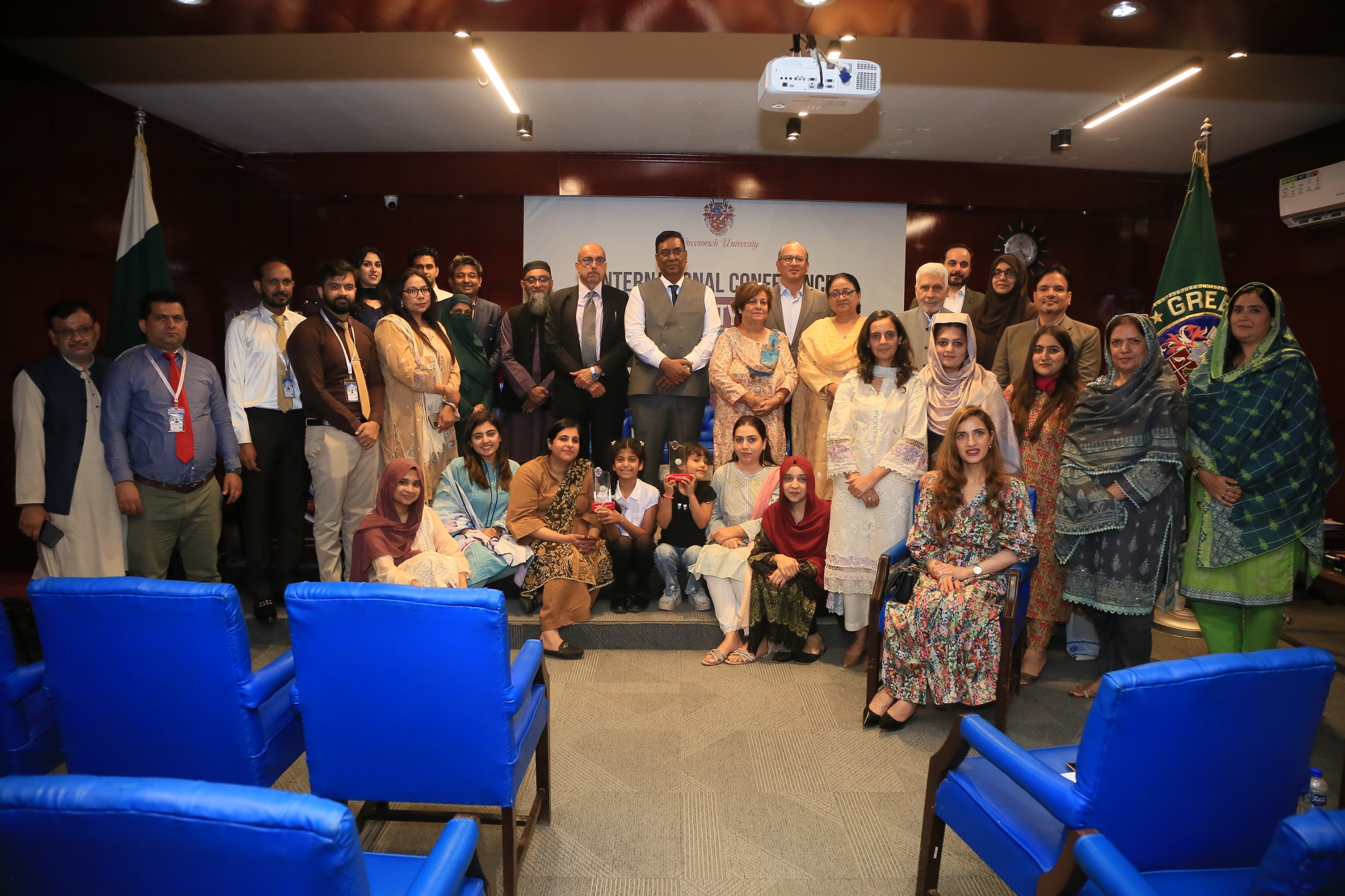 The conference brought together leading figures from academia, government, and the diplomatic community, including Vice Chancellor Dr. Seema Mughal, Sindh Higher Education Commission Director Academics Dr. Maimoona Shah, Chairman KVTC Senator Abul Haseeb Khan, NAVTTC Chairperson Ameena Gul Bilal, Mauritius High Commissioner H.E. Munsoo Kurrimbaccus, and Greenwich University’s Director DEI Eesha Ali.