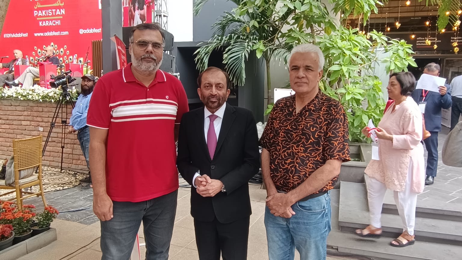 KARACHI : Group Photo of MQM leader Dr. Farooq Sattar, Director Sales and Marketing, Daily Ausaf/ABN News Karachi, Syed Turab Shah, Director Marketing, Pakistan Today Profit Magazine, Mudassar Alam on the occasion of the 10th Literature Festival held at Habit City.