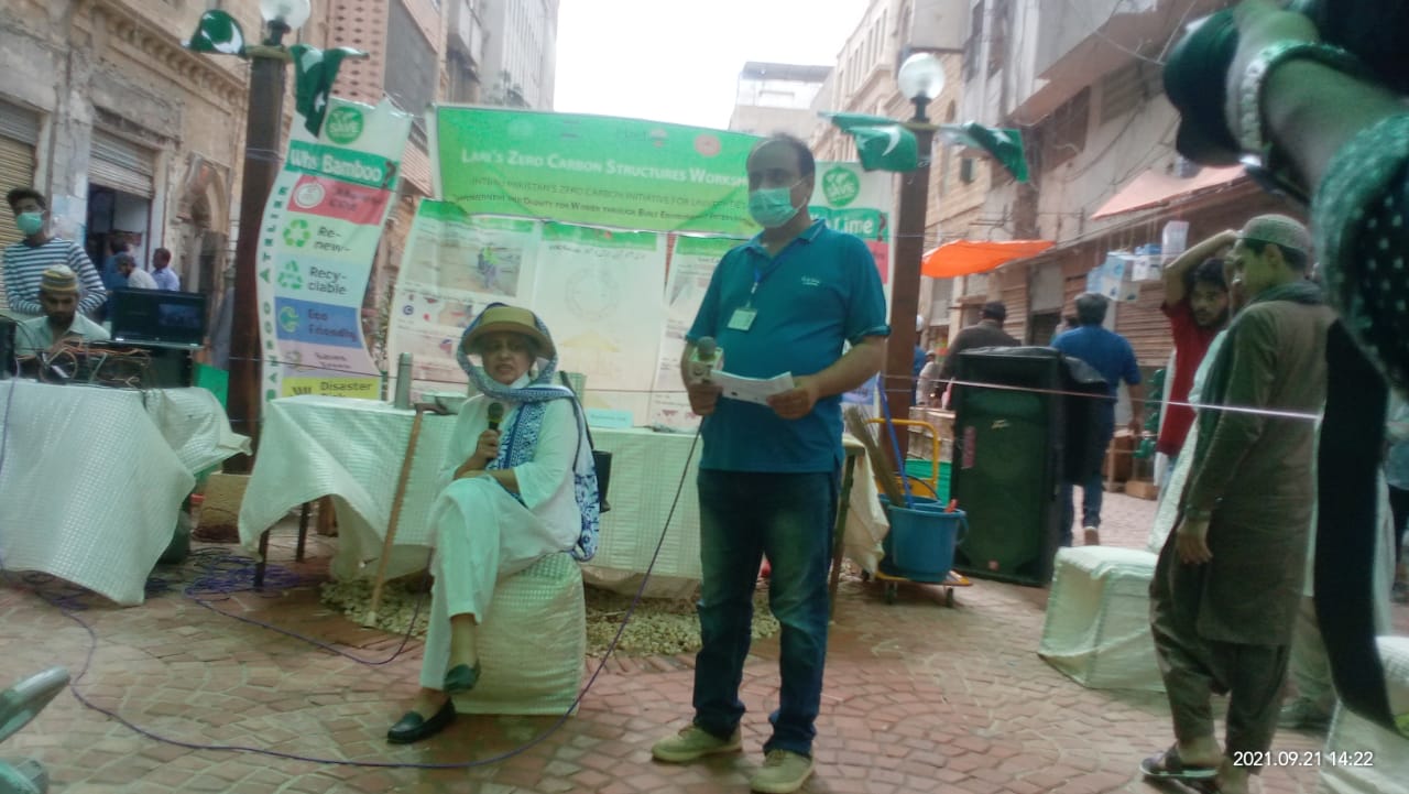Hosted by Heritage Foundation of Pakistan, after the ribbon-cutting ceremony to inaugurate the bamboo LOG built by students at Rahguzar Chowk, the event’s proceedings were conducted in Court 1 of the Rahguzar by Shanaz Ramzi, honorary secretary INTBAU Pakistan and director Heritage Foundation. After she gave her welcome address, Yasmeen Lari, CEO of Heritage Foundation and founder chairperson INTBAU Pakistan threw light on Zero Carbon Movement. Khadija Jamal, founder-member INTBAU Pakistan and education chair, spoke about INTBAU initiative for universities that had been participating in the project over the last few months. DC South, Irshad Sodhar expressed his views, commending the efforts of both Heritage Foundation and INTBAU Pakistan in making Pakistan both greener and empowered. Refreshments were served at Court 2 of the Rahguzar.
