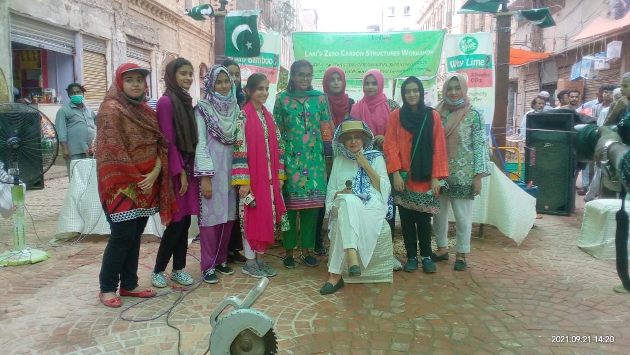 The workshop was conducted for participants of INTBAU Pakistan ((International Network for Traditional Building Architecture and Urbanism) Zero Carbon Initiative for Universities. Today’s event was attended by participating students and their friends, faculty members, members of the media, Heritage Foundation of Pakistan, and INTBAU members. The zero-carbon LOG unit was inaugurated by DC South Irshad Ali Sodhar.
