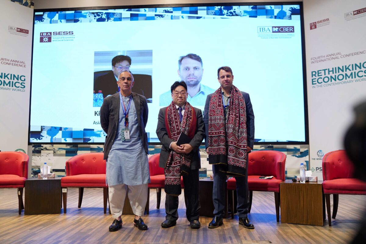 was organized in collaboration with IBA’s School of Economics and Social Sciences (IBA-SESS) and the Center for Business & Economic Research (IBA-CBER). In his opening remarks, Dr. S Akbar Zaidi, Executive Director, IBA Karachi, expressed gratitude and welcomed the participants to the conference. Dr. Zaidi emphasized the need for interdisciplinary and innovative approaches to economic challenges, inspiring academics, and policymaking, and for students to envision sustainable & inclusive solutions for the future. Kiyoshi Taniguchi, Regional Lead Economist & Marcel Schröder, Country Economist, Asian Development Bank (ADB), shared insights from the Asian Development Outlook, forecasting 5% growth for developing Asia in 2024. The priorities for Strategy 2030, focusing on climate action, private sector growth, and digital transformation were highlighted as the country’s pressing challenges. Dr. Lubna Naz, Director, IBA-CBER, delivered the welcome address. She presented the vision of the conference and emphasized the significance of expanding on traditional economic thinking. She highlighted that IBA-CBER received a huge response to the call for papers and received 300 research papers while only 40 were selected after a rigorous review. The 25% of the panelists and presenters this year comprised women, reflecting on IBA's commitment to promoting gender equality in economic research and thinking. Participants from 11 countries participated in the conference and 50 presenters and panelists from within the country, including highly marginalized areas of Pakistan. The panel discussion “Rethinking International Trade in a Digitalized World” emphasized digitalization in trade, export competitiveness, reduced costs, and seamless operations. Key challenges included weak digital infrastructure, limited cross- border interoperability, and governance gaps. Economic experts in the parallel sessions emphasized innovation and reforms for Pakistan’s sustainable growth, spotlighting initiatives like Pakistan Single Window to modernize trade. Dr. Zaidi and Dr.