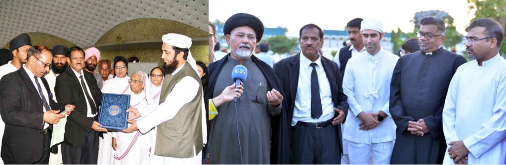 ILF’s Chairman presented the Holy Quran to Mufti Ghufran while, Mufti Ghufran, Secretary Swami Narayan Temple Estate Trust, Anand Ram, Bishop Sadiq Daniel, Bishop Fredrick John, Father Mario Angelo Rodrigues, Father AshirLiaquiat, Maharaj Vijay Kumar, SardarIshwar Singh, Maharaj Ashok Athwal, Sardar Hari Singh, Sister SaminaRehman, Sister Samina, Sister, Venus, Sister Fazilat, Women activist Amtul Khalil, religious scholar Allama Tahir Mash’hadi, Mufti Abdul Khaliq, spiritual personality Shah KafilAhmed,Bryhan of Don Basco, Banker JunaidKhan,Social Activists William Sadiq, Ms. Kiran Roshan Ali, Ashraf Chapsi, Imdad Ali Khowaja,Afee Farooq Hashwani, Pioneer and President of Jamshed Foundation International (JFI), Jamshed Ali Khowaja Advocate, Khan Ahsan Imam, Major Aston & Sergeant Nasreen of Salvation Army and many other dignitaries presented Sindhi Ajraks, flowers’ bouquets and other gifts each other.