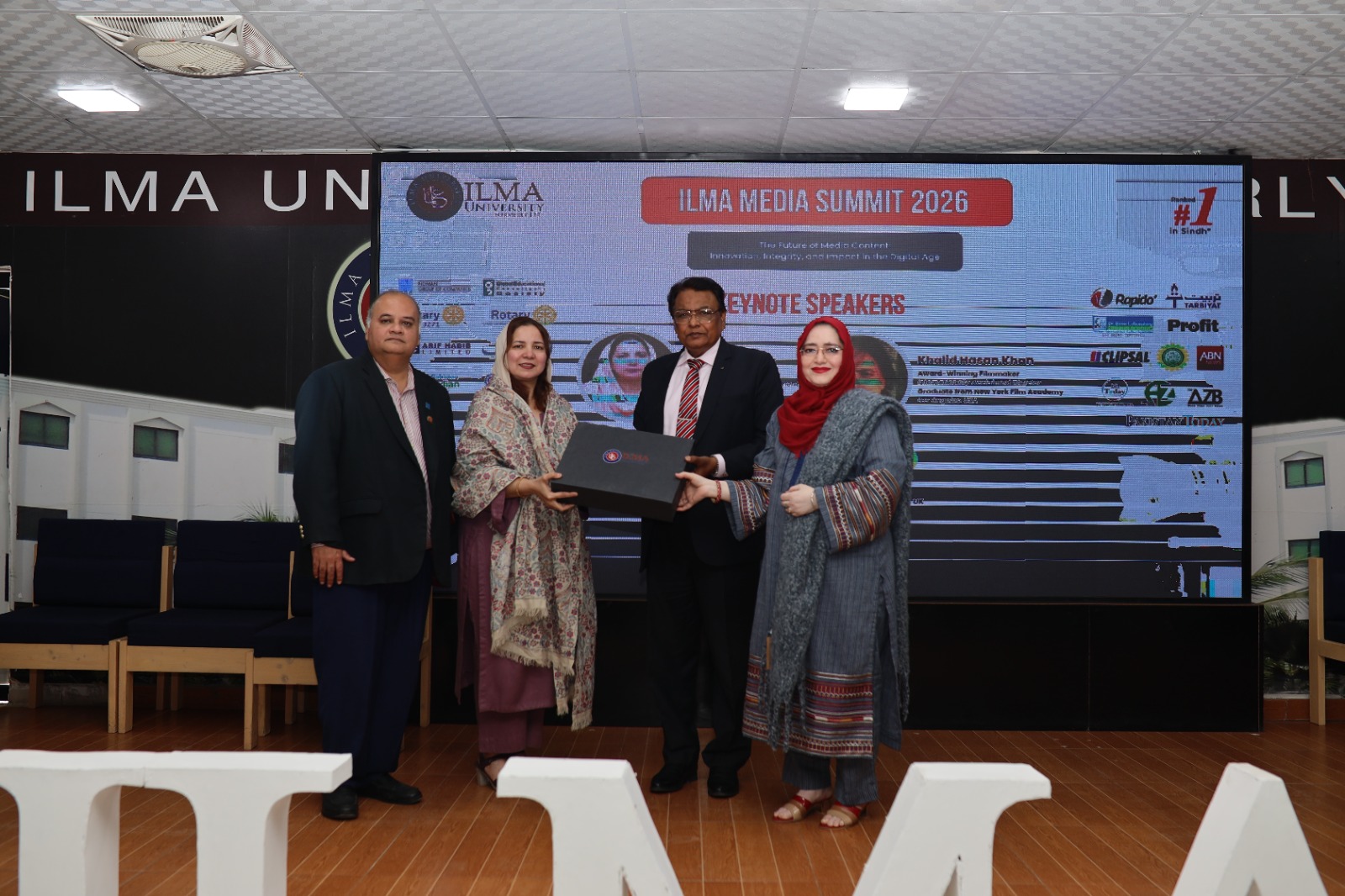 Karachi, January 22, 2026 : ILMA University organized the prestigious ILMA Media Summit 2026 under the leadership of Honorable Chancellor Mr. Noman Abid Lakhani (T.I), Vice Chancellor Prof. Dr. Mansoor Uz-Zafar Dawood, Dean, Faculty of Media & Design, Prof. Dr. Yasmeen Sultana, Registrar, Syed Kashif Rafi, Faculty of Media and Design and the Events Department, who played a pivotal role in planning and executing the summit. The summit brought together leading voices from media, journalism, filmmaking, digital platforms, corporate communications, and academic leadership to discuss the rapidly evolving media landscape.