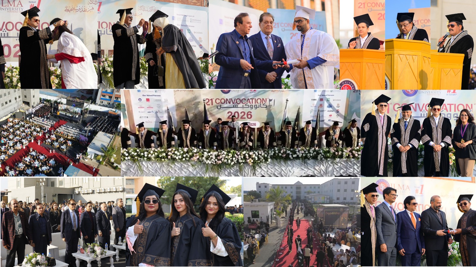ILMA University also acknowledged the invaluable support of its corporate and institutional partners, whose contributions enabled the awarding of medals and academic honors. These included Alkaram Towel Industries (Pvt.) Ltd., Gerry’s Group, Noman Group of Companies, Lakhani Group of Companies, Toyota Defence Motors, Toyota Southern Motors, Kings Group, Rotary International District 3271, Basic Construction, M.I. Mundia Group, JAS Travels, Country Group, Faizan Steel, Arif Habib Commodities, Dr. Essa Laboratories & Diagnostic Center, Afeef Zara Packages Limited, Star Marketing (Pvt.) Ltd., Coarts, Essani Group of Companies, TELEC Group of Companies, Brookes Pharma, Tufail Chemicals, Saturday Welfare Group, Transformation International, S. Fazalillahi & Sons, Jumani Group, Darul Sehat Hospital, FalakNaz Group, Rasheed Sons Steel, SATCOMM, Premier Cables, and Havi Express.