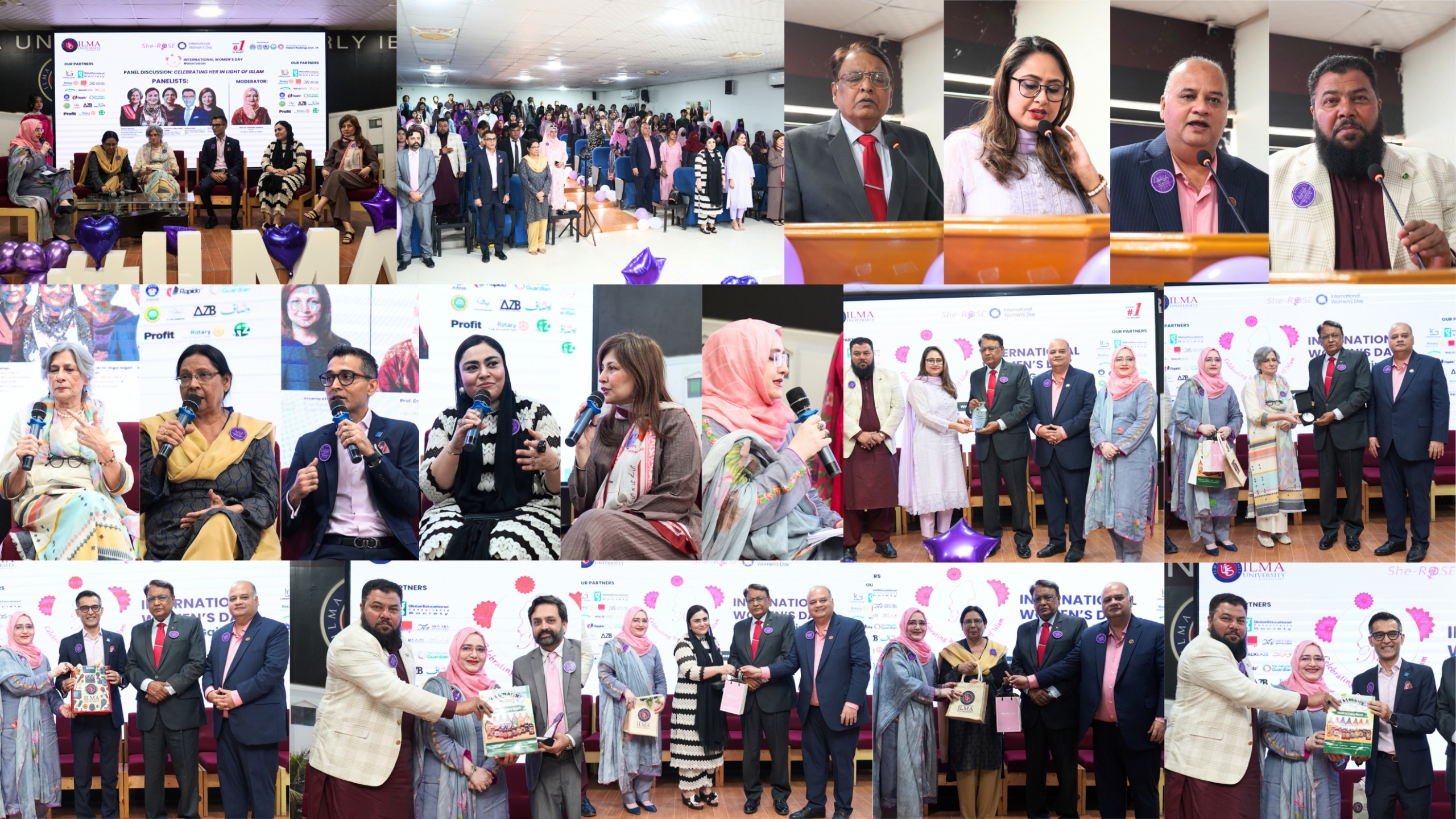 A key segment of the event was the panel discussion titled “Celebrating Her in the Light of Islam,” which featured eminent panelists including Mahnaz Rahman, Council Member HRCP, President NOWCommunities, Council Member PIIA and Former Resident Director Aurat Foundation; Moneeza Butt, Senior Partner at KPMG and Board Member ICAP; Prof. (R) Dr. Nigar Sajjad Zaheer, Former Head of the Department of Islamic History at the University of Karachi and noted writer and historian; Shahzad Sabir, District Governor (2026–27) Rotary International District 3271; and Amena Khan, Film Director and CEO of DreamTeem Films. The event also featured ILMA alumna Faiza Abbasi, Assistant Manager Group Communications at Packages Group, who shared her professional journey and encouraged students to pursue excellence and leadership in the corporate sector.