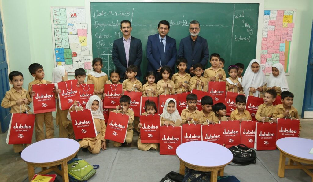In the spirit of the Holy month of Ramazan, Jubilee Life Insurance, Pakistan’s largest private sector insurance company, as a socially responsible corporate entity celebrated the occasion by distributing gift bags to the students at Karachi Port Trust Primary School. The initiative aimed to spread happiness and joy among the children during the holy month of Ramazan. Rizwan Aziez, Head of Bancassurance, Faiz ul Hassan, Head of Corporate Business Distribution, and Saqib Hayat Mirza, Business Head, Individual Life Insurance were present at the ceremony.
